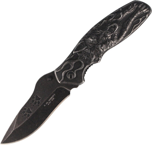 • Folding knife from the German company Herbertz Solingen. Knife made of AISI 420 steel with wolf motif on the facings.